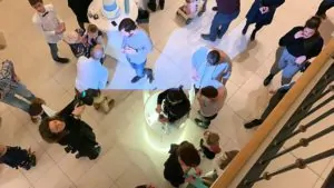 La convivialité continue puisque même devant l’oeuvre commune les convives se regroupent pour partager leur expérience et montrer leur contribution.
