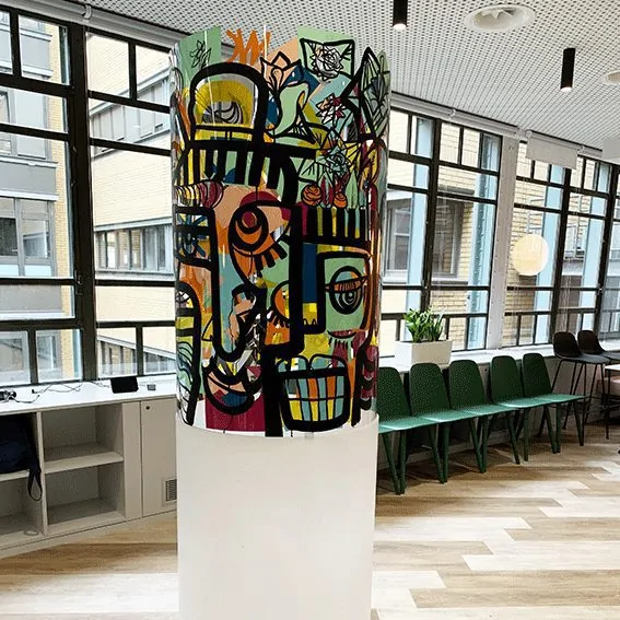 Au final, le cylindre est ouvert pour dévoiler une œuvre collective surprenante et attachante. Chaque participant à ce Team Building Fresque atypique retrouve un peu de lui dans l’œuvre.
