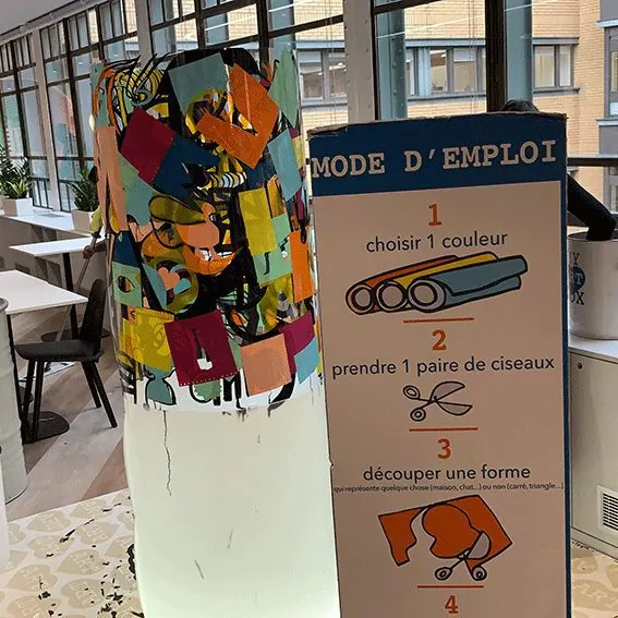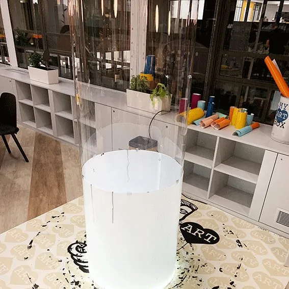 L’atelier participatif de l’artiste aNa s’articule autour d’un format extrêmement original, ludique et pratique : un cylindre. Cette forme assure une circulation optimale.